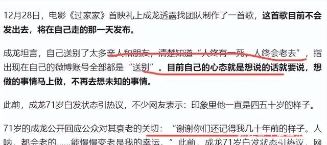 12月28日,71岁的成龙现身在电影《过家家》首映礼,他一方面为了宣传自己的新作,另一方面也自曝了自己的真实处境。